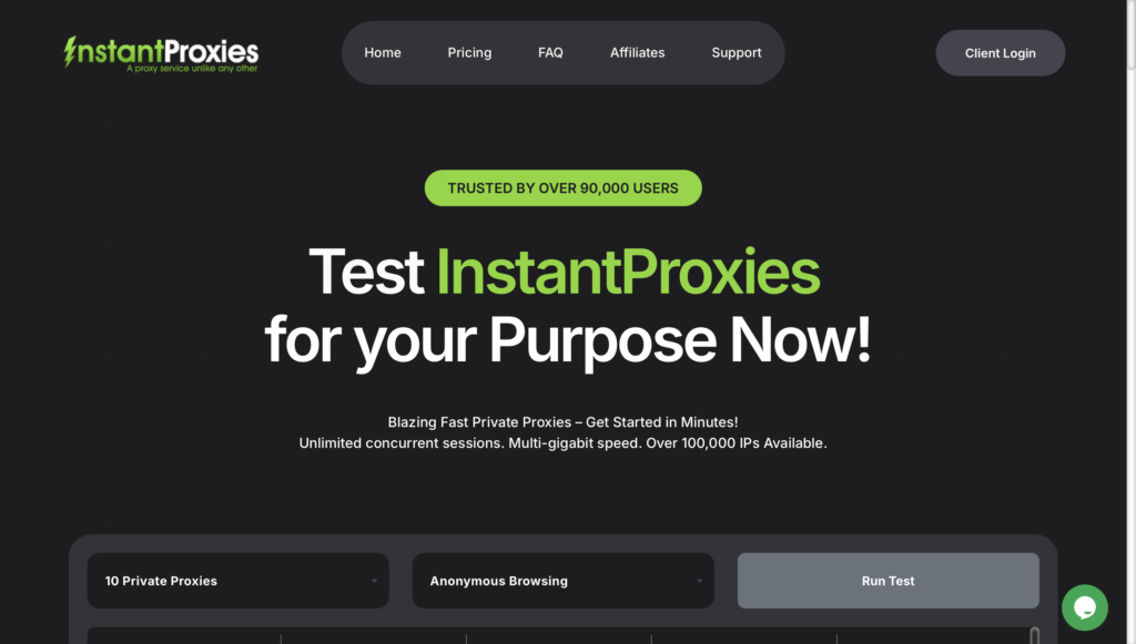 InstantProxies delivers highly anonymous, datacenter-based private HTTP proxies designed for high-performance tasks such as web crawling, content posting, and anonymous browsing. As one of the more established players in the proxy market, it prioritizes speed and reliability, with proxies compatible across major browsers, automation tools, and custom systems. Strengths include blazing-fast connections with unlimited bandwidth, a 99.99% network uptime guarantee, and instant delivery within minutes of purchase, facilitated by simple IP authentication. This makes it particularly effective for scraping sites like Amazon and managing social media accounts. Weaknesses may arise from its datacenter focus, which could be less effective against advanced IP detection on some platforms compared to residential alternatives, and the service’s emphasis on affordability might imply a trade-off in premium features for enterprise-level users. Nevertheless, InstantProxies maintains elite anonymity and subnet variety, ensuring quality and compatibility for diverse applications including streaming services like Netflix.