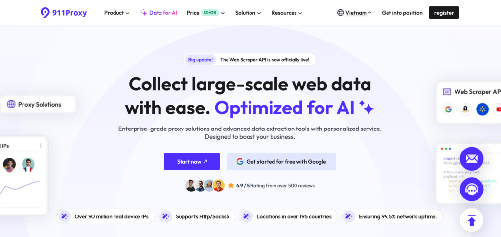 911Proxy is a premium residential proxy provider with enterprise solutions for web data gathering and brand protection. It offers real device IPs across 195+ countries, including Iran for secure access. Strengths encompass high stability and developer-friendly APIs for integration. Weaknesses could include restrictions in certain regions like mainland China. 911Proxy is trusted for cybersecurity and regional content unlocking.