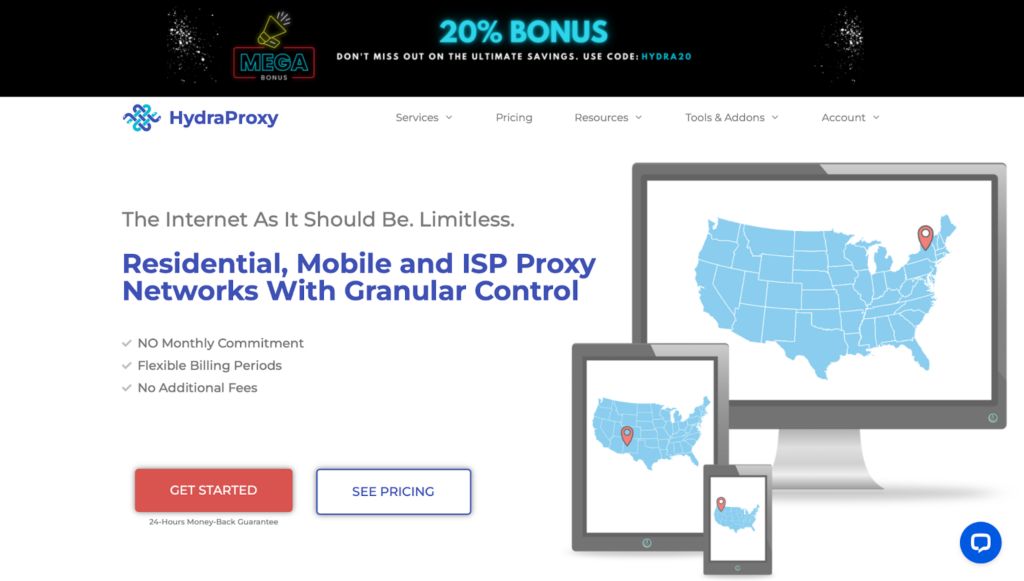 - Key features: Country and city targeting, rotating or sticky options, protocol support.