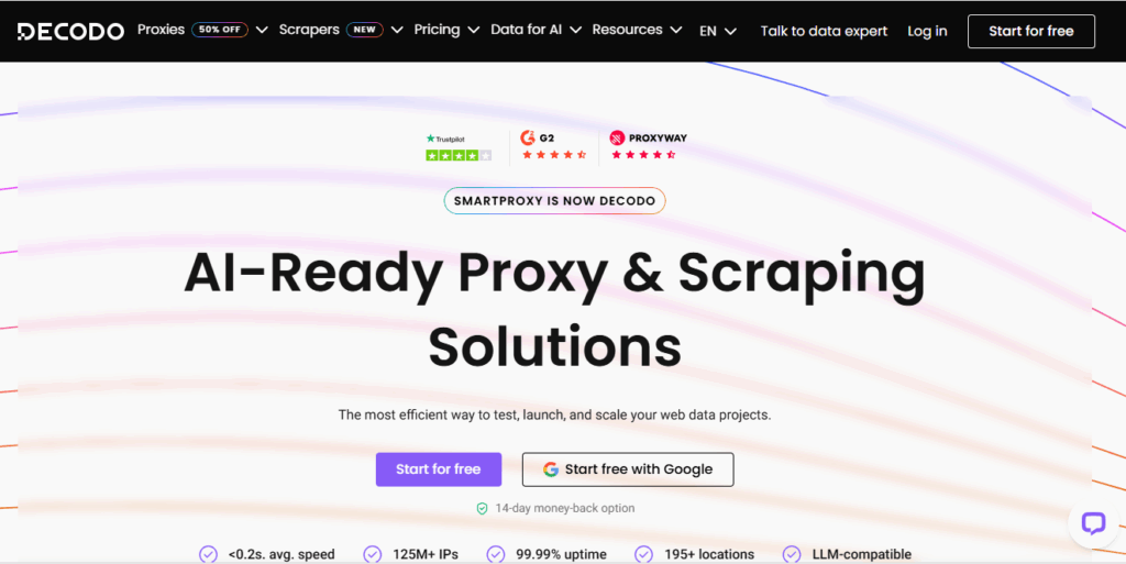 Decodo (formerly Smartproxy) provides reliable Serbia proxies with 65 million IPs in 195 locations. Strong for small to medium businesses, with city/ASN targeting. Benchmarks show 99%+ success and fast speeds.