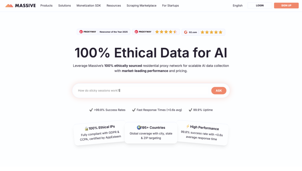 - Achieves 99.97% success rate and 99.7% uptime for datacenter proxies.