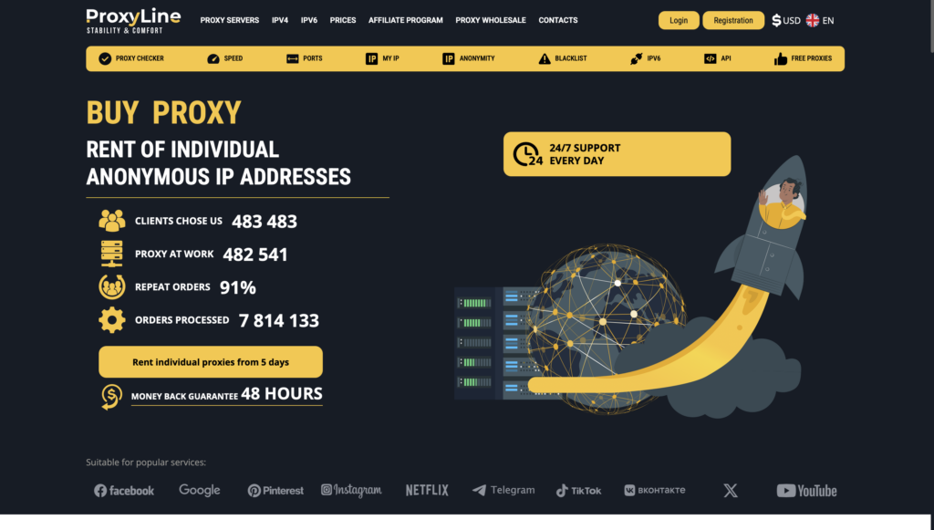 Reviews cheer wide cities and subnets, with good for social like VK. Support 24/7 sorts fast, and money back in 48 hours adds safe. Weak includes IPv4 cost over IPv6, and no fit for some ad sites. The API and panel run handy for manage. In all, Proxyline bends for VK pros wanting stable and cheap.